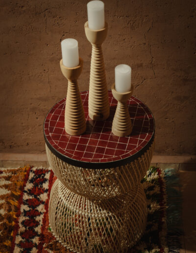 Le bougeoir Nayel est une pièce sculpturale pensée pour sublimer vos intérieurs avec une élégance brute et contemporaine. Entièrement façonné à la main dans un bois massif soigneusement sélectionné, chaque pièce est tournée manuellement à la main, chaque modèle révèle un travail minutieux de sculpture verticale, un jeu de strates texturées et un design graphique qui évoque les pièces artisanales des ateliers marocains.