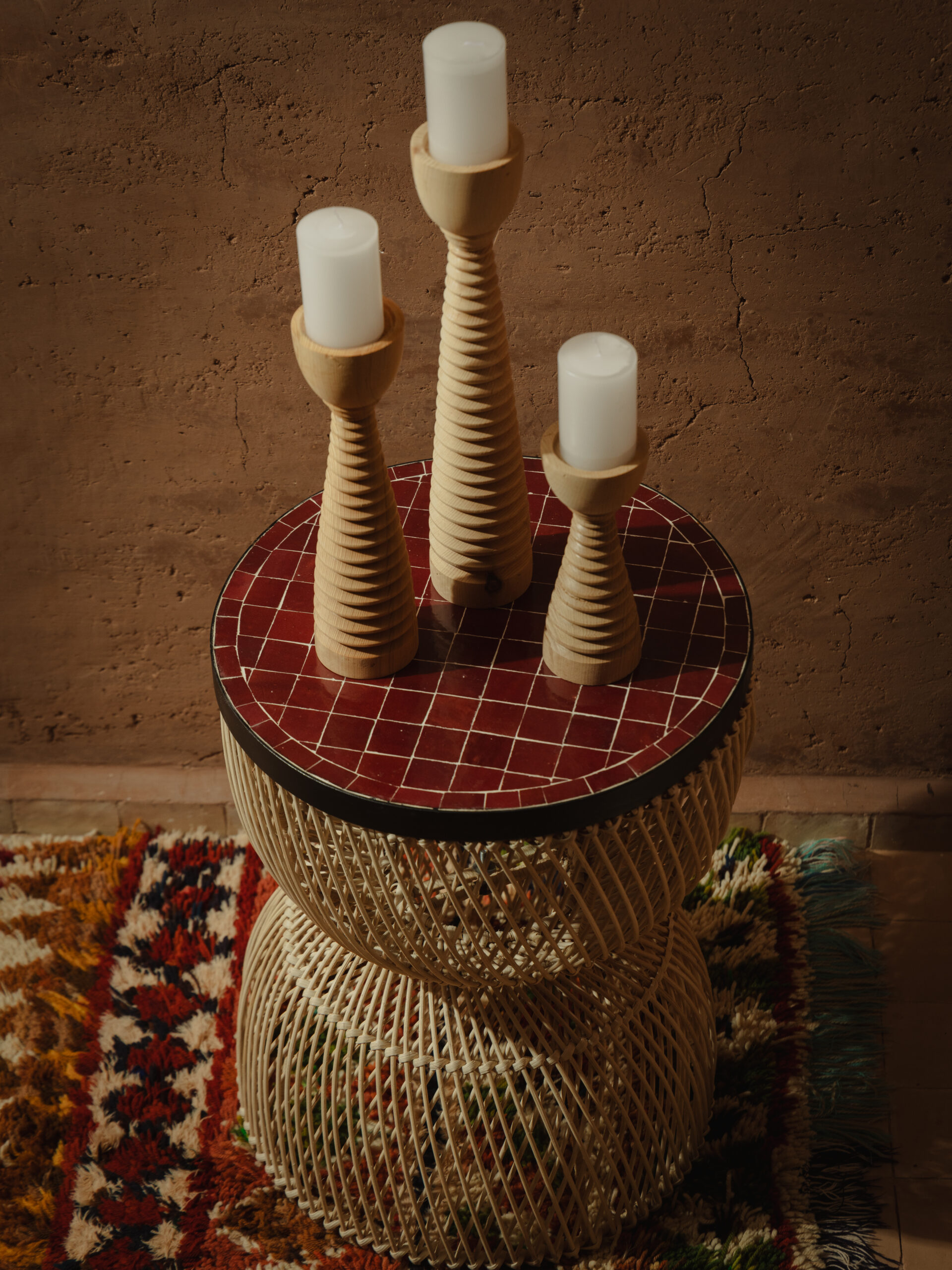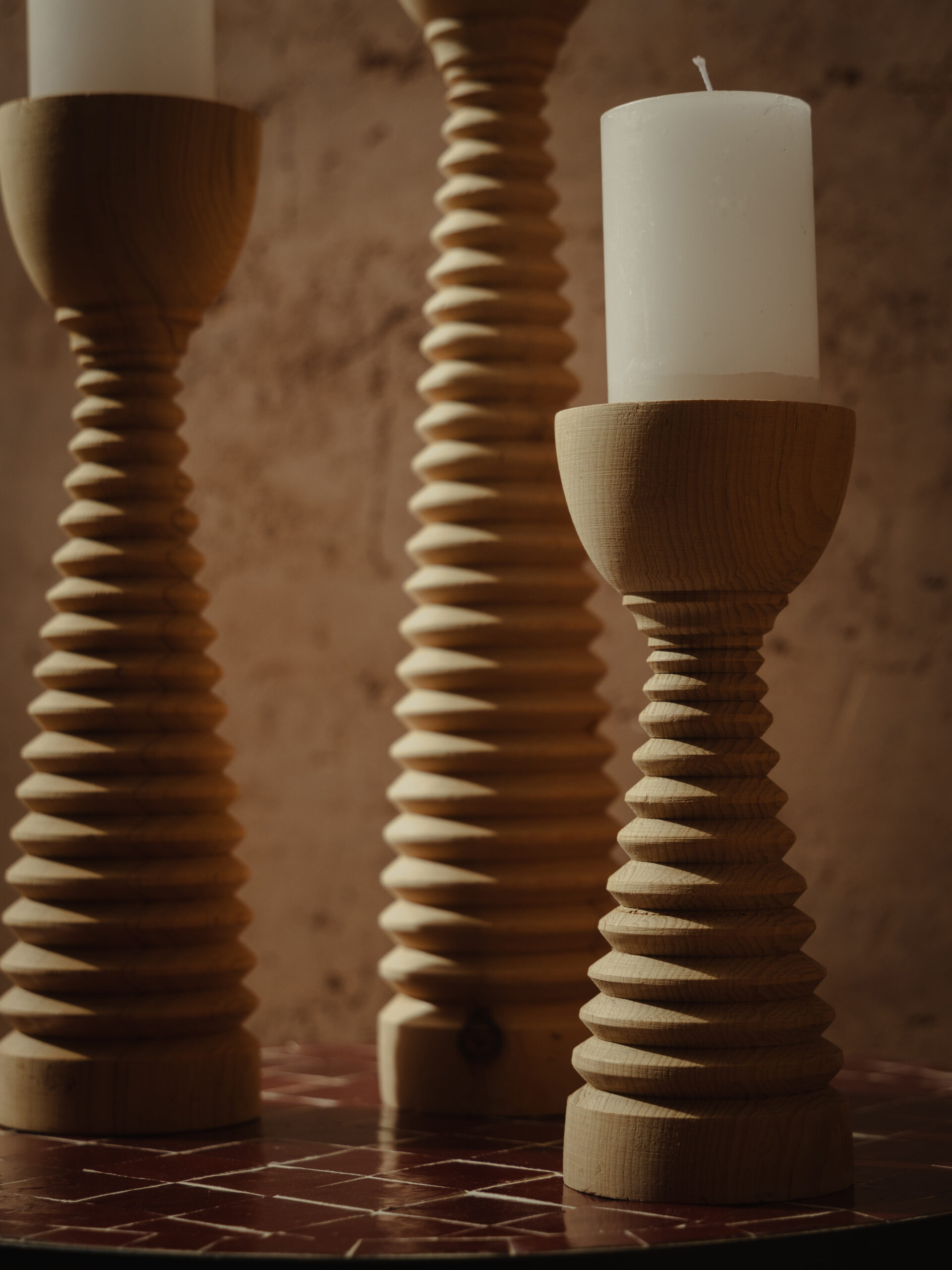 Trio de Bougeoirs Nayel — Bois Sculpté à la Main – Design naturel et artisanal
