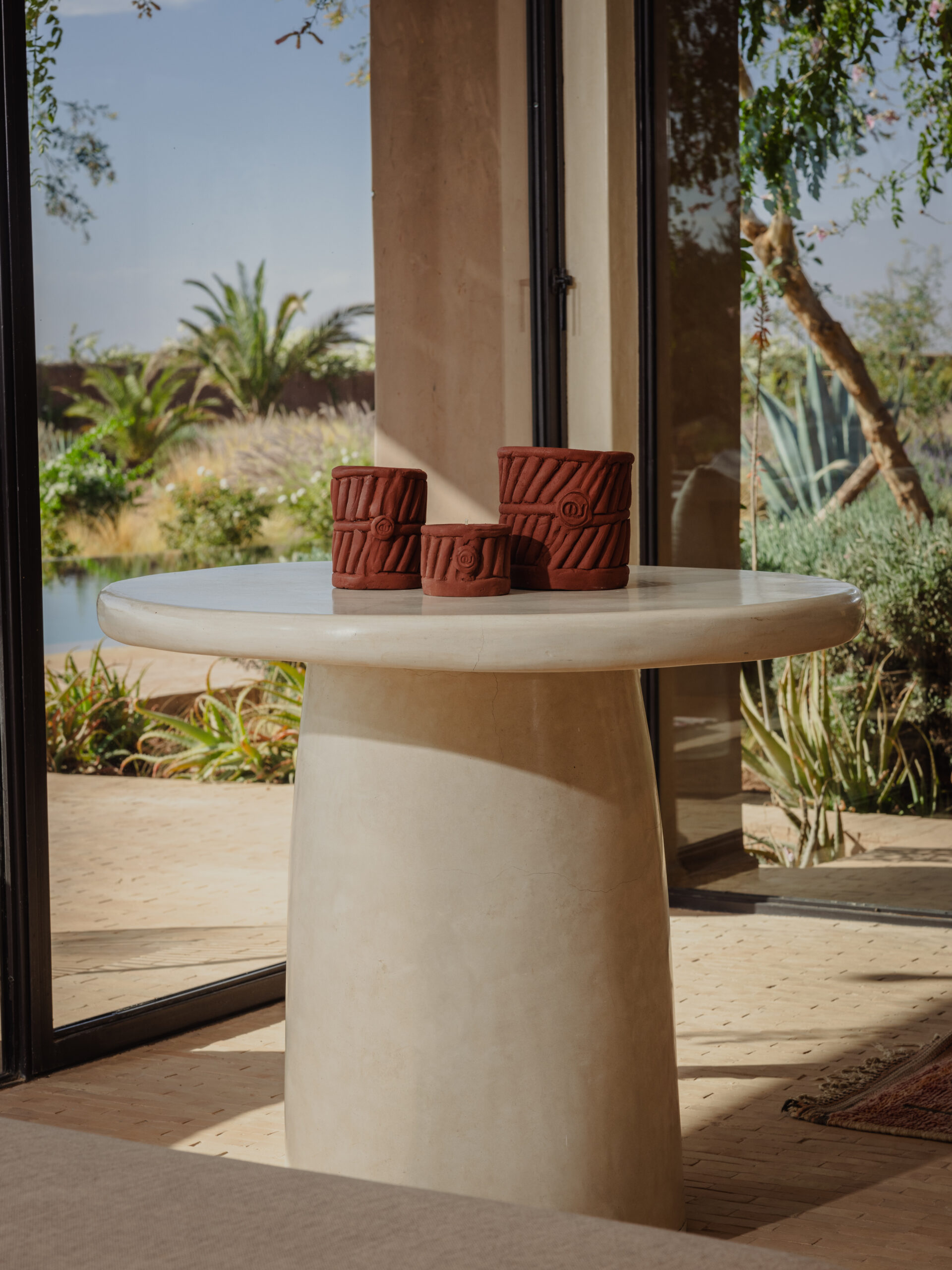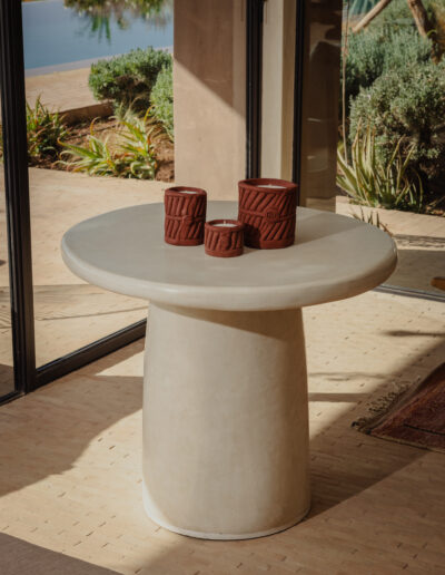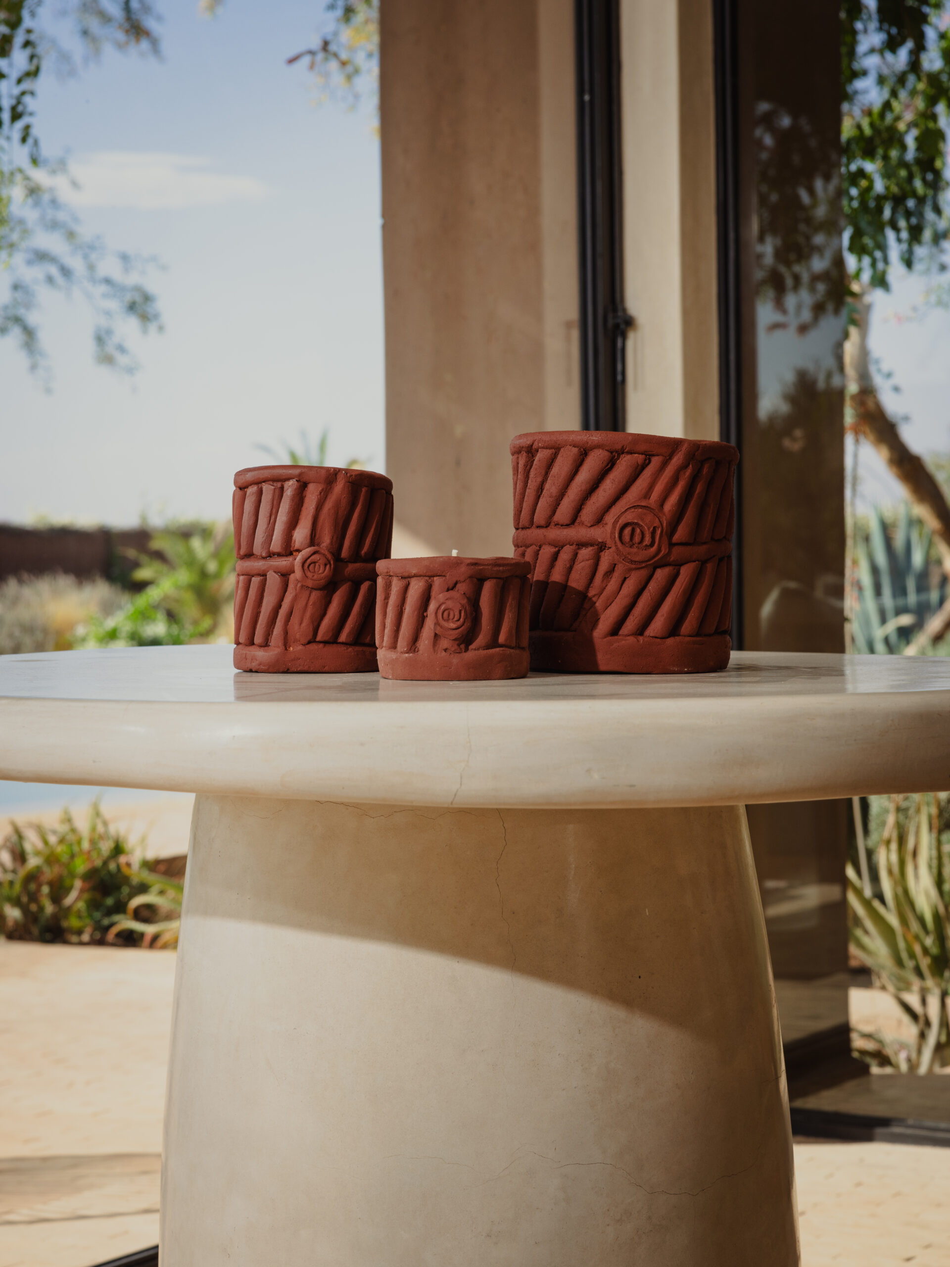 Dans la collection Matéria, Loule Intérieur réinvente l’art du feu et de la terre en donnant naissance à des pièces sculpturales façonnées à la main par nos artisans. Chaque contenant en terre cuite est modelé selon une technique ancestrale, où les stries sont apposées une à une pour créer une texture brute, organique, presque architecturale.