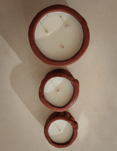 Chaque bougie Matéria est une création unique – une œuvre façonnée à la main, imparfaite comme seule la main de l’homme peut l’être, authentique comme la terre dont elle est issue.