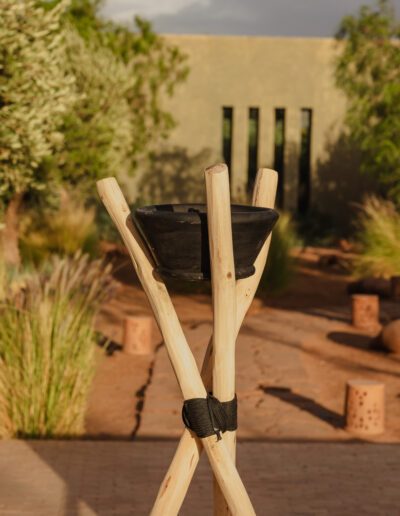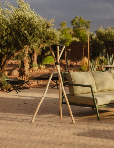 Chaque trépied est sculpté à la main, conservant la courbe et la texture d’origine du bois pour un rendu organique et vivant.