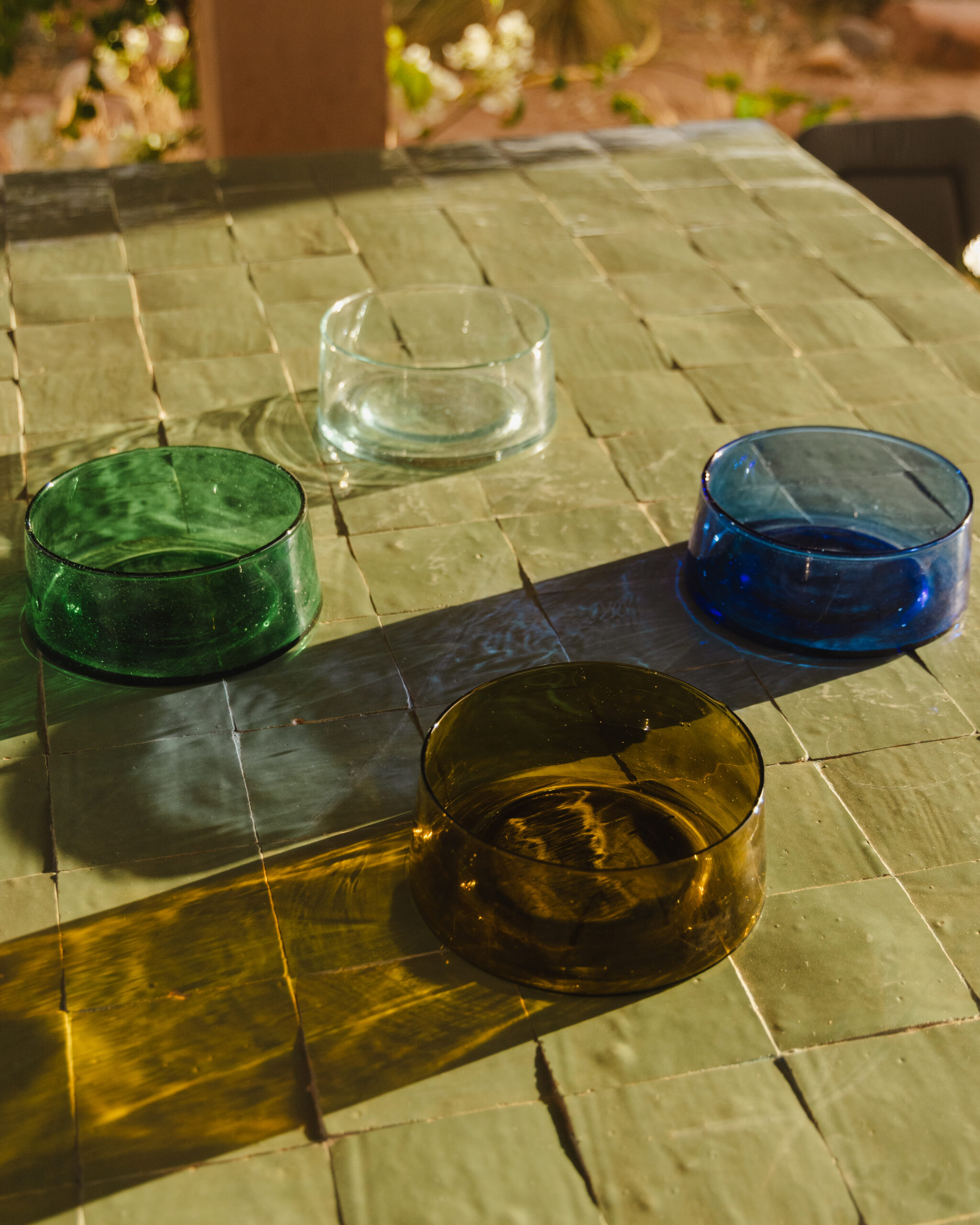 Disponible en teintes naturelles : transparent, vert, bleu ou ambre, le saladier beldi s’intègre parfaitement à une table élégante et épurée, qu’elle soit moderne ou bohème.