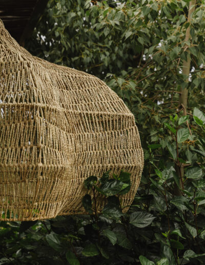 Une suspension artisanale en cordelette de palmier tressée à la main, au design organique et sculptural. Disponible en trois tailles, pour une lumière naturelle et apaisante.